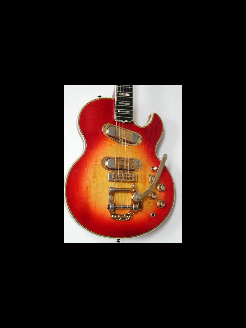 Exceptionnelle Gibson L5 S solidbody de 1972. Je précise solidbody, la Gibson L5 étant beaucoup plus célèbre en version acoustic archtop ou encore en archtop électrique L5 CES. Cette L5 S a été produite en couleur sunburst qu'une année (1972) dans la version micros basse impédence. C'est une superbe guitare dont le look et a la beauté n'ont pas pris une ride. Les L5 S ont été produites de 1972 à 1974 avec les micros basse impédence et ensuite de 1975 à 1980 avec les micros Humbuckers. La guitare présentée est certainement une version spéciale avec le bigsby monté d'origine. Ecoute la bande son.