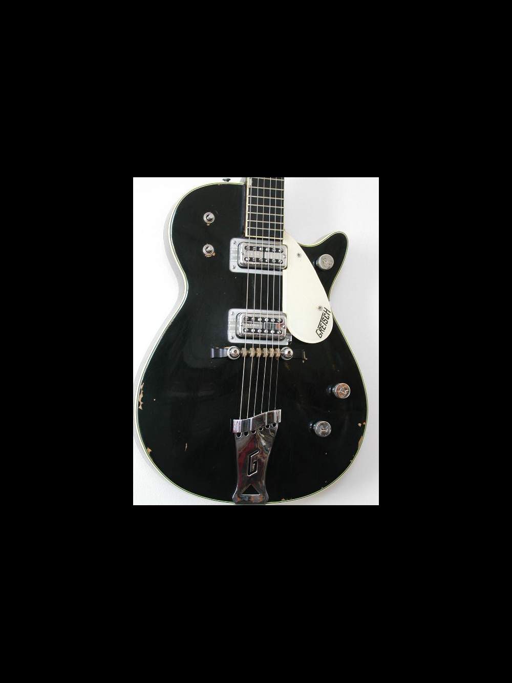 Gretsch 6128 Duojet de 1959. Etat d'origine. C'est une de mes guitare préférée. La Gretsch Duojet a été produite de 1953 à 1971 c'est une solidbody simple cutaway jusqu'en 1961 et double cutaway ensuite. De couleur noire (6128), elle a été proposée en finition sparkle dans les années 1963/1966. Une version réissue est produite depuis 1990.